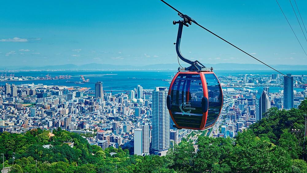 멀리는 오사카만, 가까이는 고베시의 전경이 한눈에 내려다보이는 로프웨이
